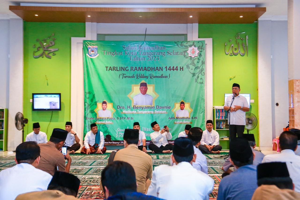 KanalNasional.com | Selanjutnya giliran wilayah Kecamatan Setu yang menjadi lokasi digelarnya Safari Ramadan. Saat Safari Ramadan di wilayah Setu Wali Kota Tangerang Selatan Benyamin Davnie mengunjungi masjid Al-Madani, Perumahan Puri Serpong 1 Blok C, Setu, Tangerang Selatan, Senin (03/04).
