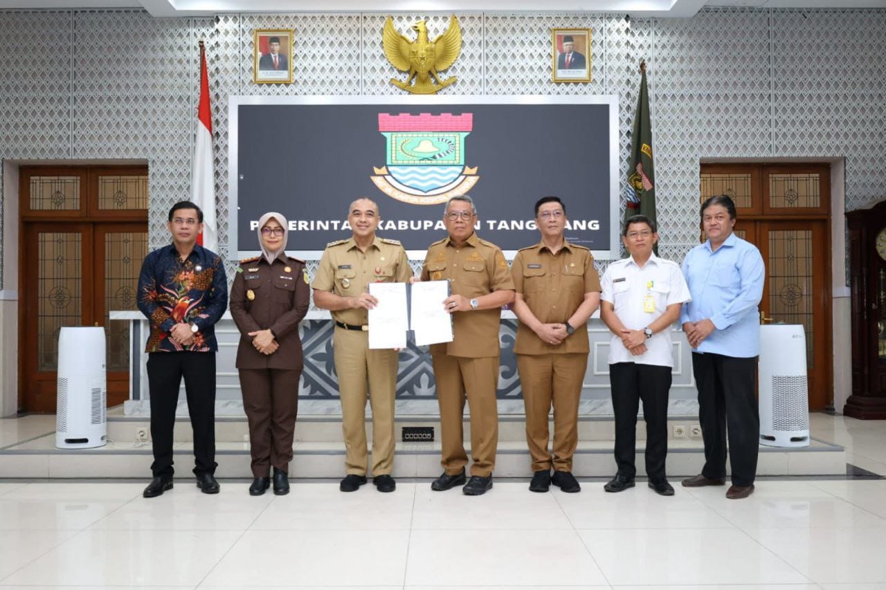 KanalNasional.com | Wali Kota Tangerang Selatan Benyamin Davnie menerima secara langsung hibah aset berupa Tempat Pemakaman Umum (TPU) dari Bupati Tangerang A. Zaki Iskandar, di Gedung Pendopo Bupati Tangerang pada Selasa (14/2).
