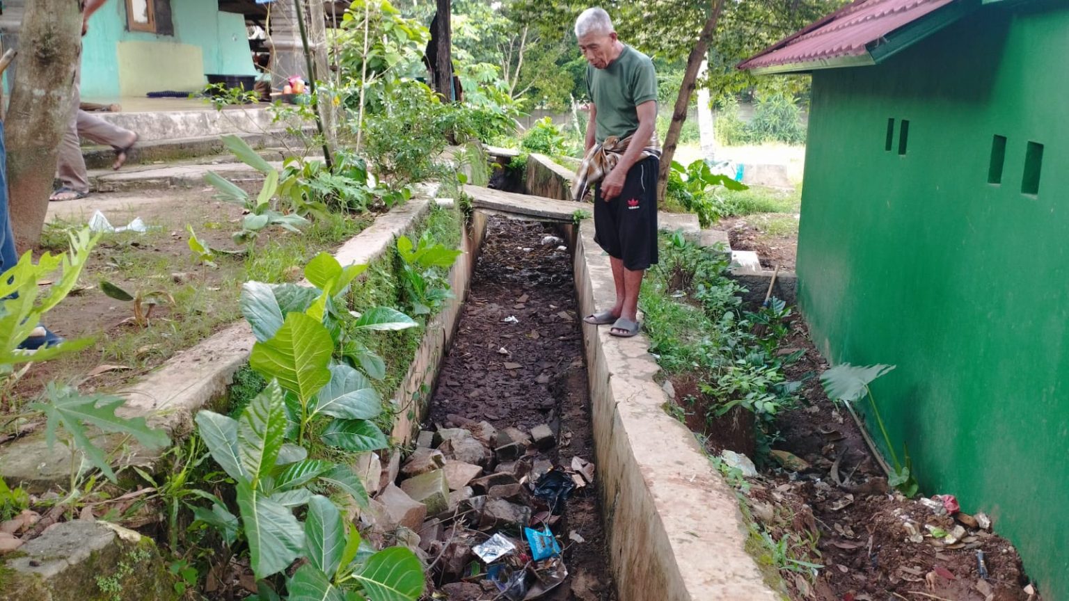 “Air tumpahnya dari sini, kalau hujan deras ,” kata abah Ulik sambil menunjuk turab selokan yang jebol.
