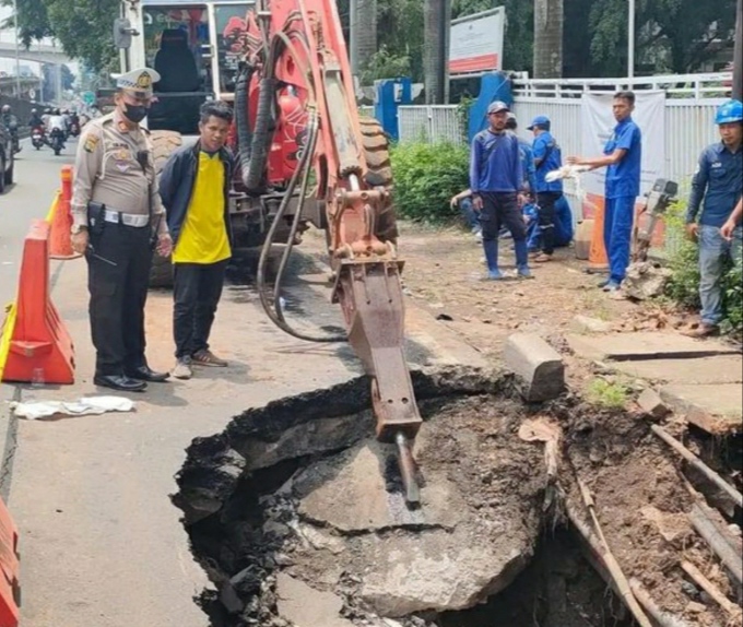 “amblas karena di bawah kan ada saluran gorong-gorong pecah. Jadi air terus-menerus akhirnya jalanan longsor,” terang Hari kepada wartawan, Jumat (3/3).